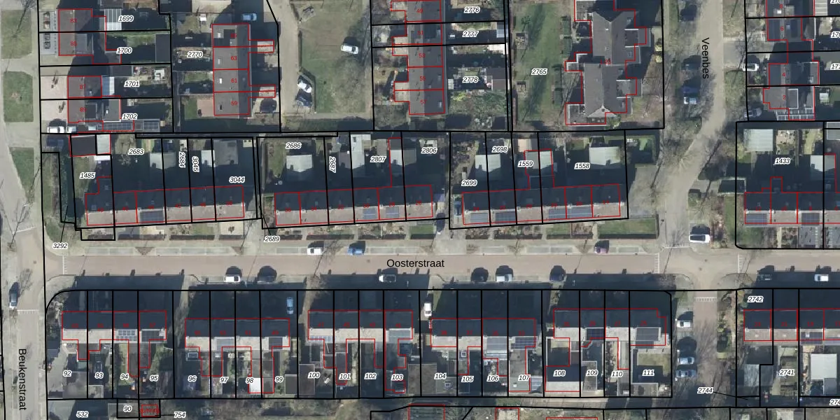 Gebruik de zoekbalk of klik op een perceel voor informatie over de adressen binnen dit perceel.