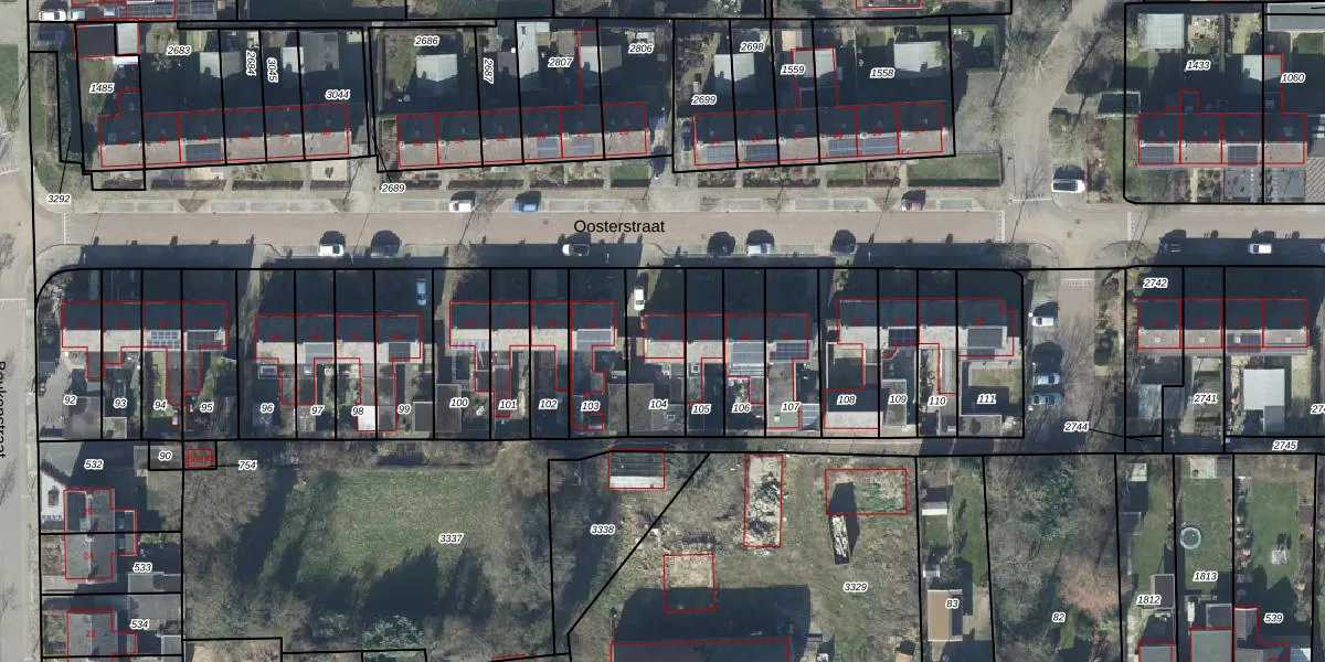 Het perceel waarop Oosterstraat 39 staat heeft een oppervlakte van 220 m². Dit is een middelgroot perceel. De perceeloppervlakte wordt geregistreerd door het Kadaster. Gedetailleerde informatie over de maten van dit perceel kunt u vinden in het rapport Kadastrale kaart met maatvoering van Oosterstraat 39.