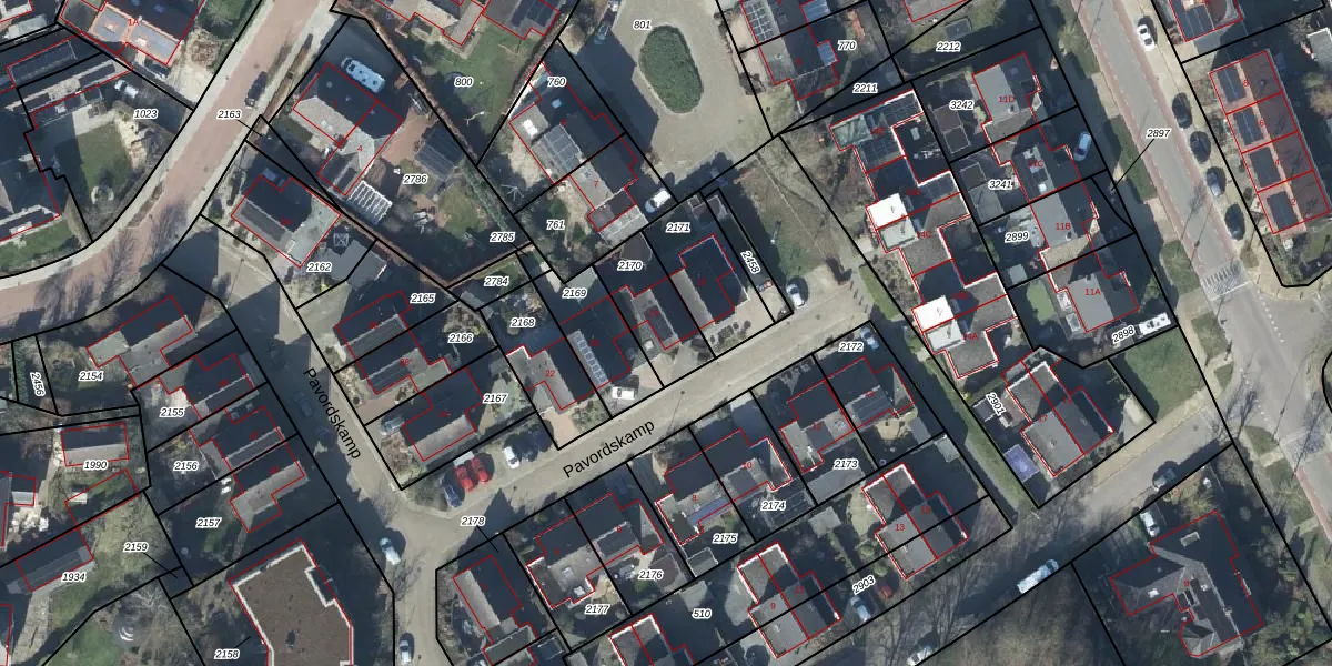 Het perceel waarop Pavordskamp 18 staat heeft een oppervlakte van 192 m². Dit is een middelgroot perceel. De perceeloppervlakte wordt geregistreerd door het Kadaster. Gedetailleerde informatie over de maten van dit perceel kunt u vinden in het rapport Kadastrale kaart met maatvoering van Pavordskamp 18.