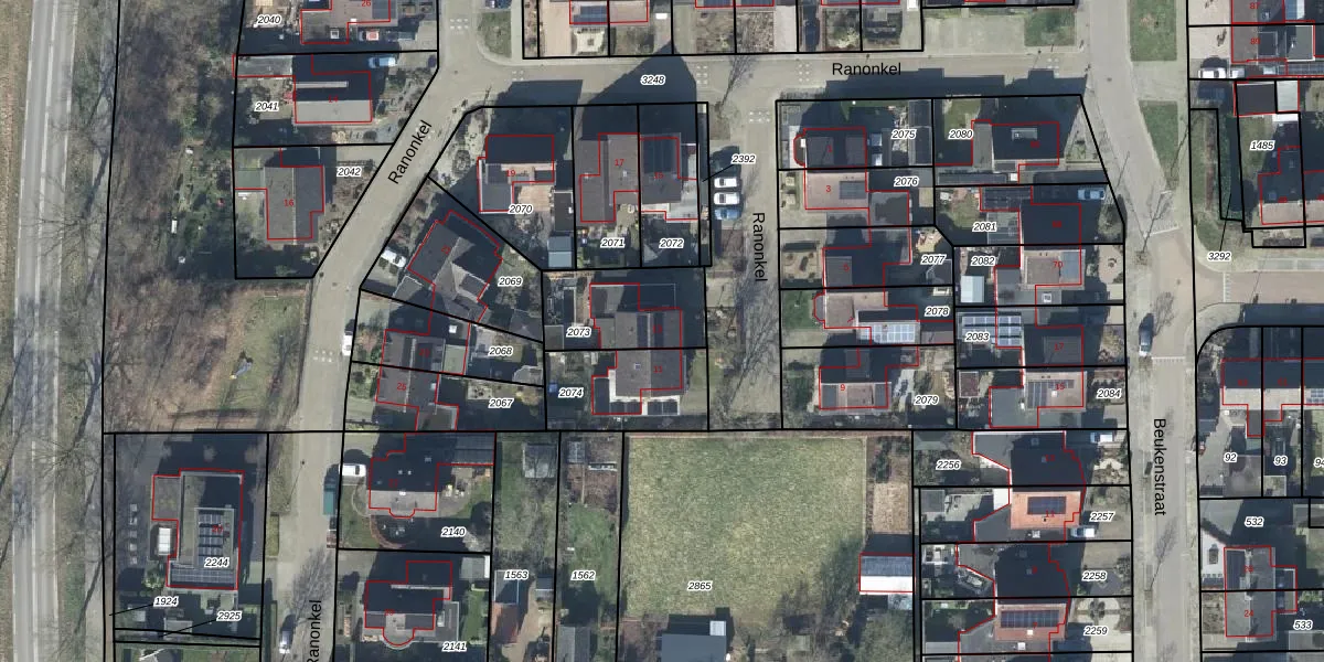 Gebruik de zoekbalk of klik op een perceel voor informatie over de adressen binnen dit perceel.