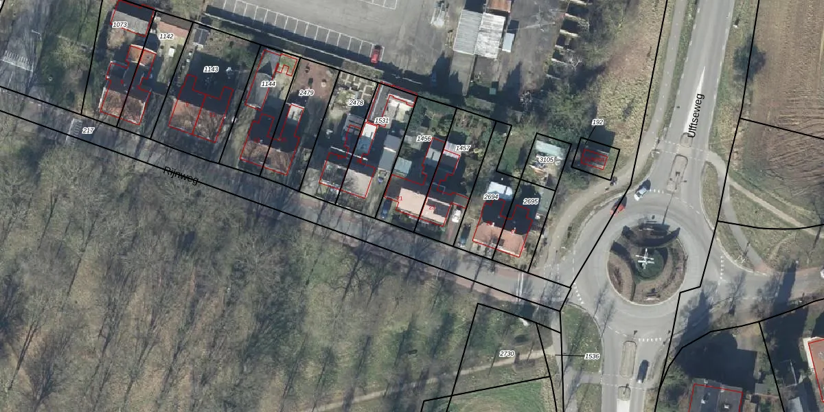 Gebruik de zoekbalk of klik op een perceel voor informatie over de adressen binnen dit perceel.