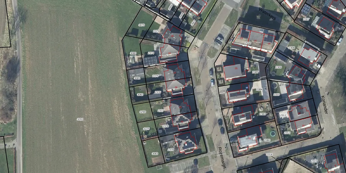 Het perceel waarop Rozemarijn 26 staat heeft een oppervlakte van 266 m². Dit is een middelgroot perceel. De perceeloppervlakte wordt geregistreerd door het Kadaster. Gedetailleerde informatie over de maten van dit perceel kunt u vinden in het rapport Kadastrale kaart met maatvoering van Rozemarijn 26.