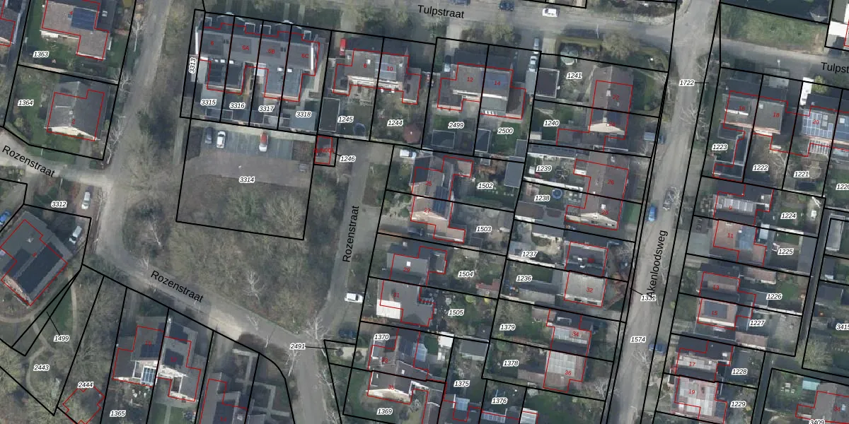 Het perceel waarop Rozenstraat 27 staat heeft een oppervlakte van 327 m². Dit is een groot perceel. De perceeloppervlakte wordt geregistreerd door het Kadaster. Gedetailleerde informatie over de maten van dit perceel kunt u vinden in het rapport Kadastrale kaart met maatvoering van Rozenstraat 27.