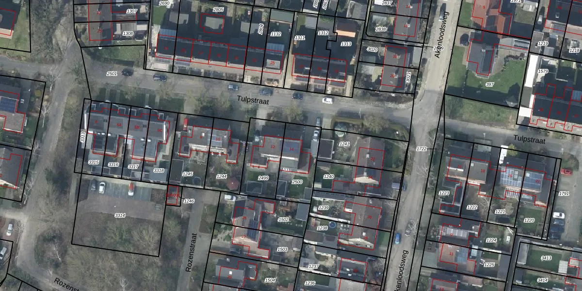 Tulpstraat 14 is gelegen op kadastraal perceel GDG00K2500. Deze kadastrale aanduiding is uniek en wordt gebruikt door het Kadaster om eigendomsrechten en andere zakelijke rechten vast te leggen. Het perceel maakt onderdeel uit van de kadastrale gemeente Gendringen.