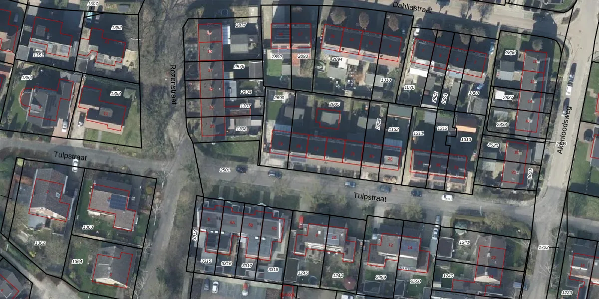 Het perceel waarop Tulpstraat 15 staat heeft een oppervlakte van 656 m². Dit is een groot perceel. De perceeloppervlakte wordt geregistreerd door het Kadaster. Gedetailleerde informatie over de maten van dit perceel kunt u vinden in het rapport Kadastrale kaart met maatvoering van Tulpstraat 15.