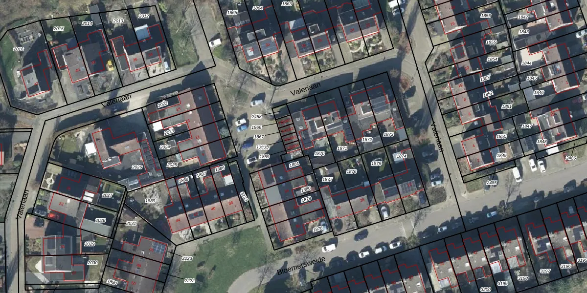 Het perceel waarop Valeriaan 7-G004 staat heeft een oppervlakte van 36 m². Dit is een klein perceel. De perceeloppervlakte wordt geregistreerd door het Kadaster. Gedetailleerde informatie over de maten van dit perceel kunt u vinden in het rapport Kadastrale kaart met maatvoering van Valeriaan 7-G004.