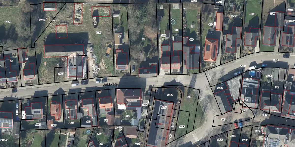 Het perceel waarop Veldweg 12 staat heeft een oppervlakte van 963 m². Dit is een groot perceel. De perceeloppervlakte wordt geregistreerd door het Kadaster. Gedetailleerde informatie over de maten van dit perceel kunt u vinden in het rapport Kadastrale kaart met maatvoering van Veldweg 12.
