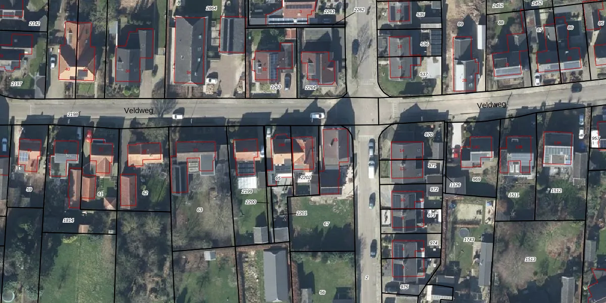 Veldweg 19 is gelegen op kadastraal perceel GDG00K2202. Deze kadastrale aanduiding is uniek en wordt gebruikt door het Kadaster om eigendomsrechten en andere zakelijke rechten vast te leggen. Het perceel maakt onderdeel uit van de kadastrale gemeente Gendringen.