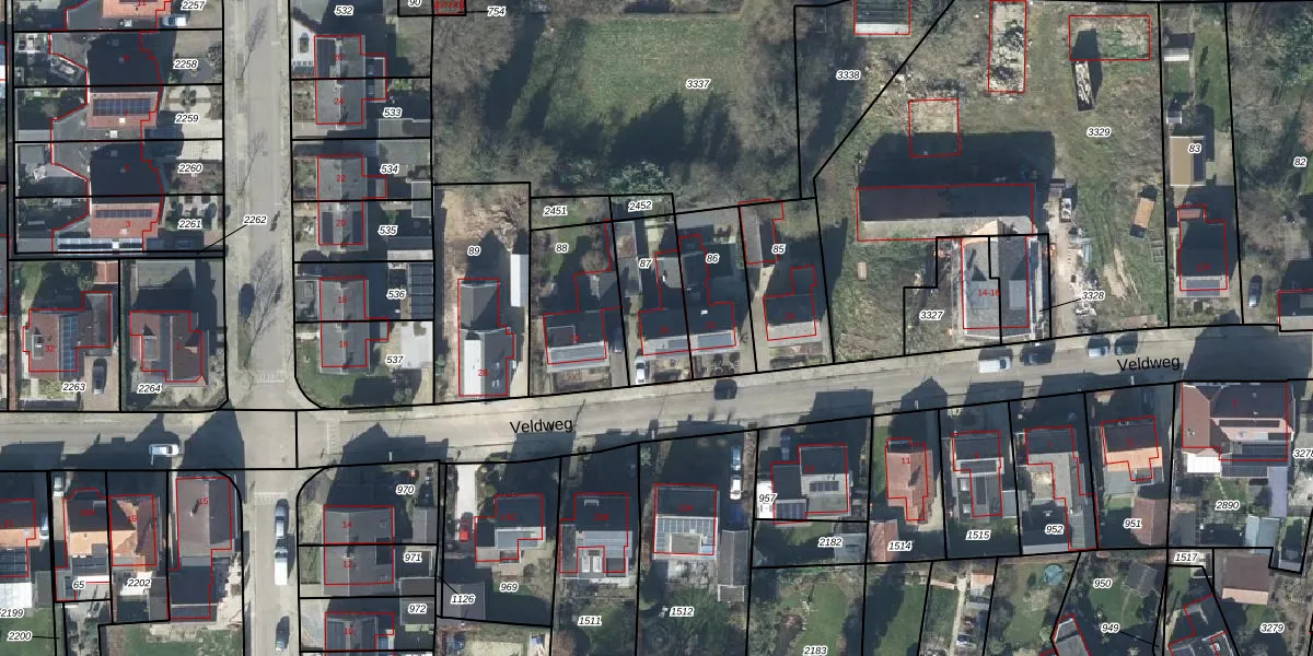 Gebruik de zoekbalk of klik op een perceel voor informatie over de adressen binnen dit perceel.