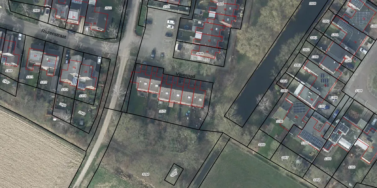 Het perceel waarop Vijverpad 3 staat heeft een oppervlakte van 1090 m². Dit is een zeer groot perceel. De perceeloppervlakte wordt geregistreerd door het Kadaster. Gedetailleerde informatie over de maten van dit perceel kunt u vinden in het rapport Kadastrale kaart met maatvoering van Vijverpad 3.