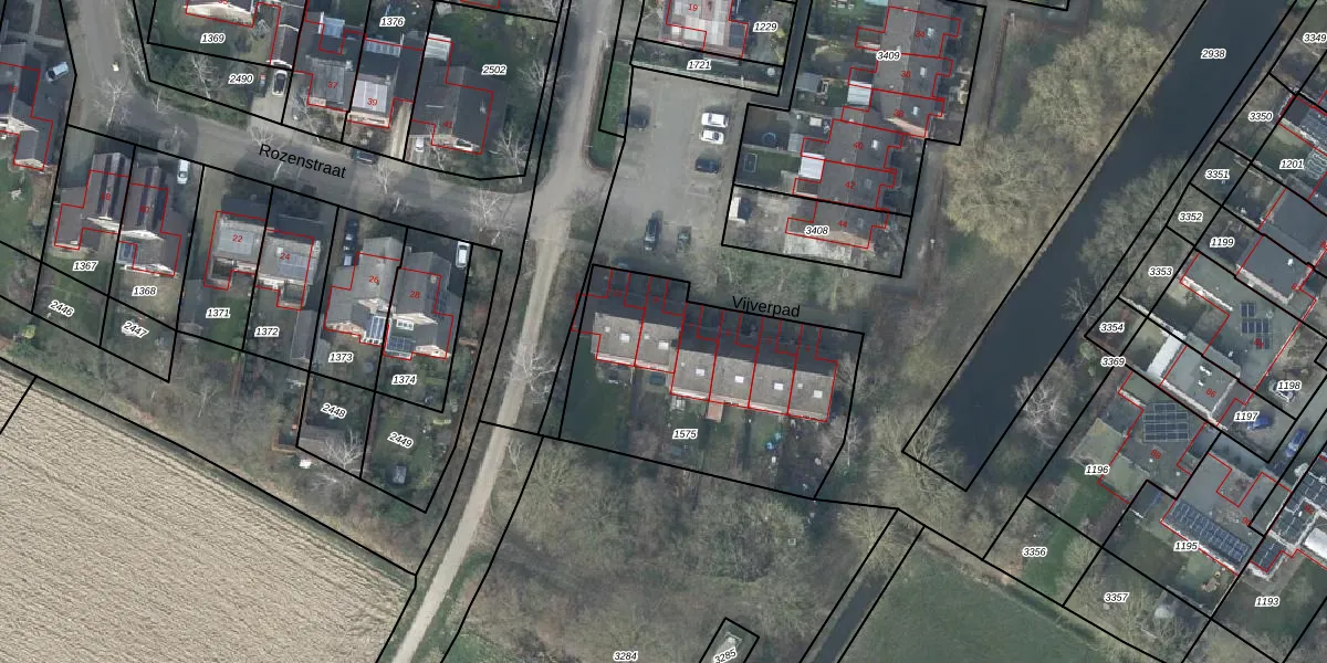 Het perceel waarop Vijverpad 9 staat heeft een oppervlakte van 1090 m². Dit is een zeer groot perceel. De perceeloppervlakte wordt geregistreerd door het Kadaster. Gedetailleerde informatie over de maten van dit perceel kunt u vinden in het rapport Kadastrale kaart met maatvoering van Vijverpad 9.
