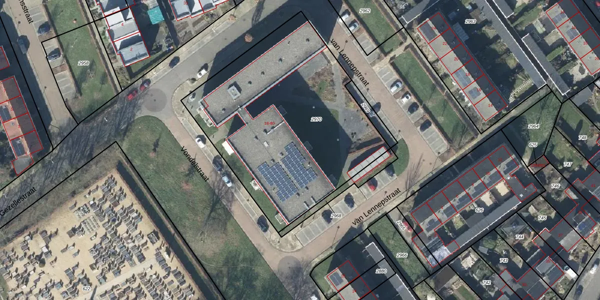 Het perceel waarop Vondelstraat 50 staat heeft een oppervlakte van 2668 m². Dit is een zeer groot perceel. De perceeloppervlakte wordt geregistreerd door het Kadaster. Gedetailleerde informatie over de maten van dit perceel kunt u vinden in het rapport Kadastrale kaart met maatvoering van Vondelstraat 50.