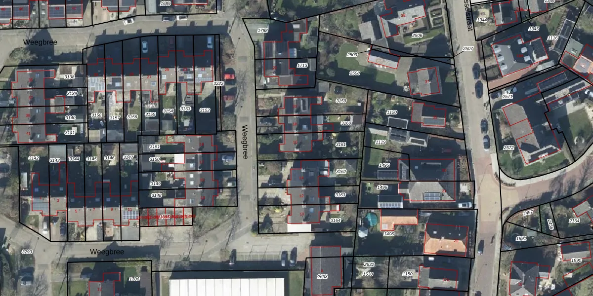 Gebruik de zoekbalk of klik op een perceel voor informatie over de adressen binnen dit perceel.