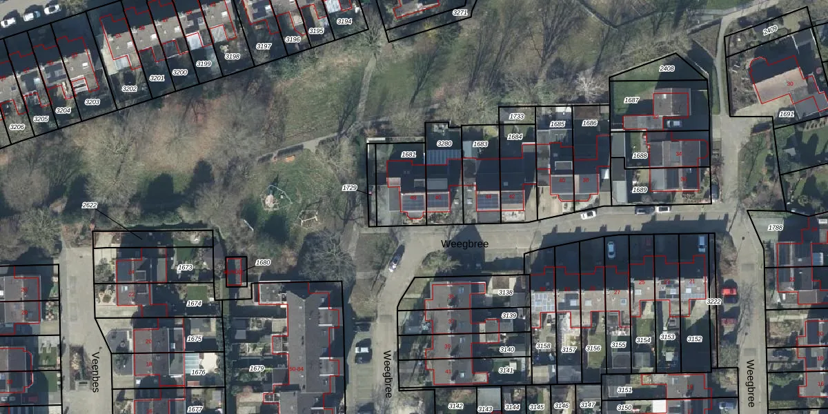 Gebruik de zoekbalk of klik op een perceel voor informatie over de adressen binnen dit perceel.