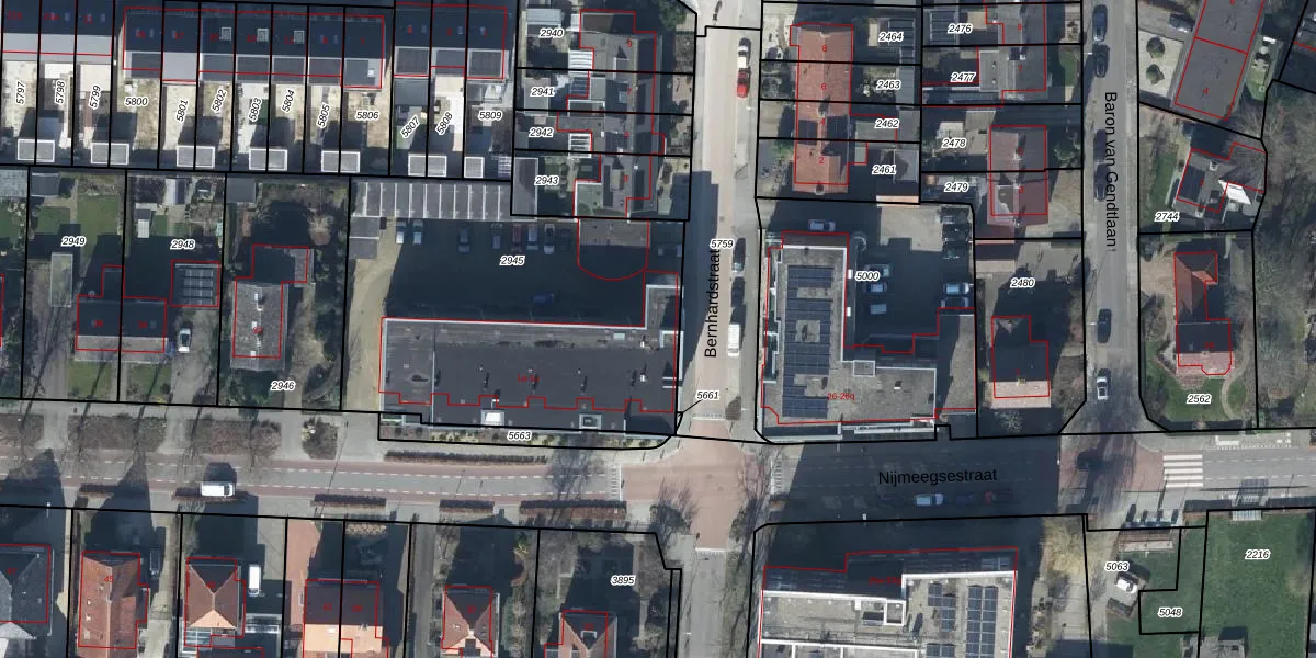 Het perceel waarop Bernhardstraat 1-n staat heeft een oppervlakte van 1754 m². Dit is een zeer groot perceel. De perceeloppervlakte wordt geregistreerd door het Kadaster. Gedetailleerde informatie over de maten van dit perceel kunt u vinden in het rapport Kadastrale kaart met maatvoering van Bernhardstraat 1-n.