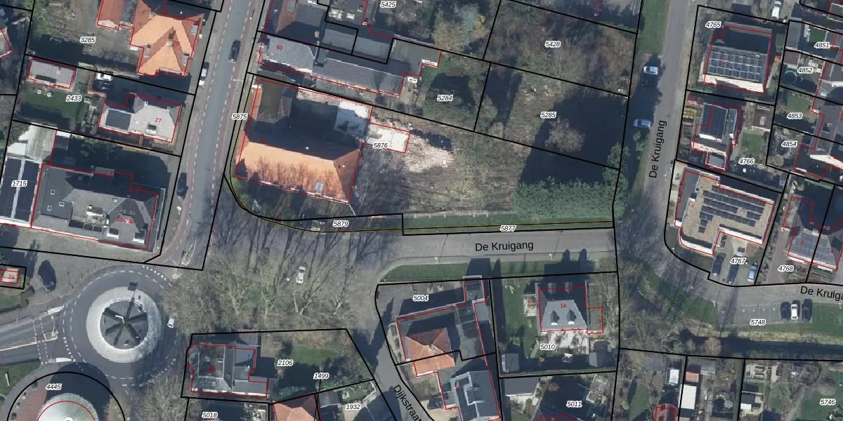 De Kruigang 39 is gelegen op kadastraal perceel GEN00A5876. Deze kadastrale aanduiding is uniek en wordt gebruikt door het Kadaster om eigendomsrechten en andere zakelijke rechten vast te leggen. Het perceel maakt onderdeel uit van de kadastrale gemeente Gendt.