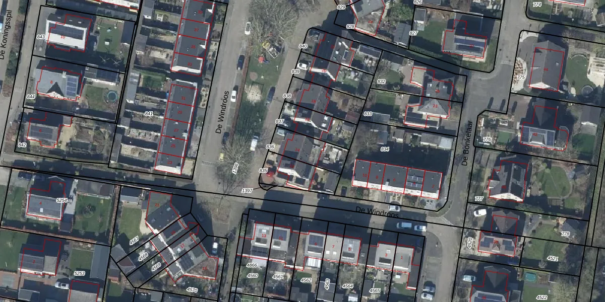 Gebruik de zoekbalk of klik op een perceel voor informatie over de adressen binnen dit perceel.