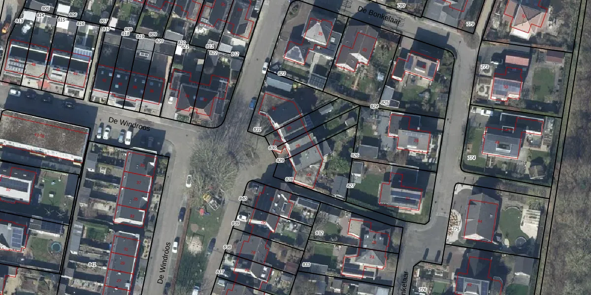 Het perceel waarop De Windroos 26 staat heeft een oppervlakte van 165 m². Dit is een middelgroot perceel. De perceeloppervlakte wordt geregistreerd door het Kadaster. Gedetailleerde informatie over de maten van dit perceel kunt u vinden in het rapport Kadastrale kaart met maatvoering van De Windroos 26.