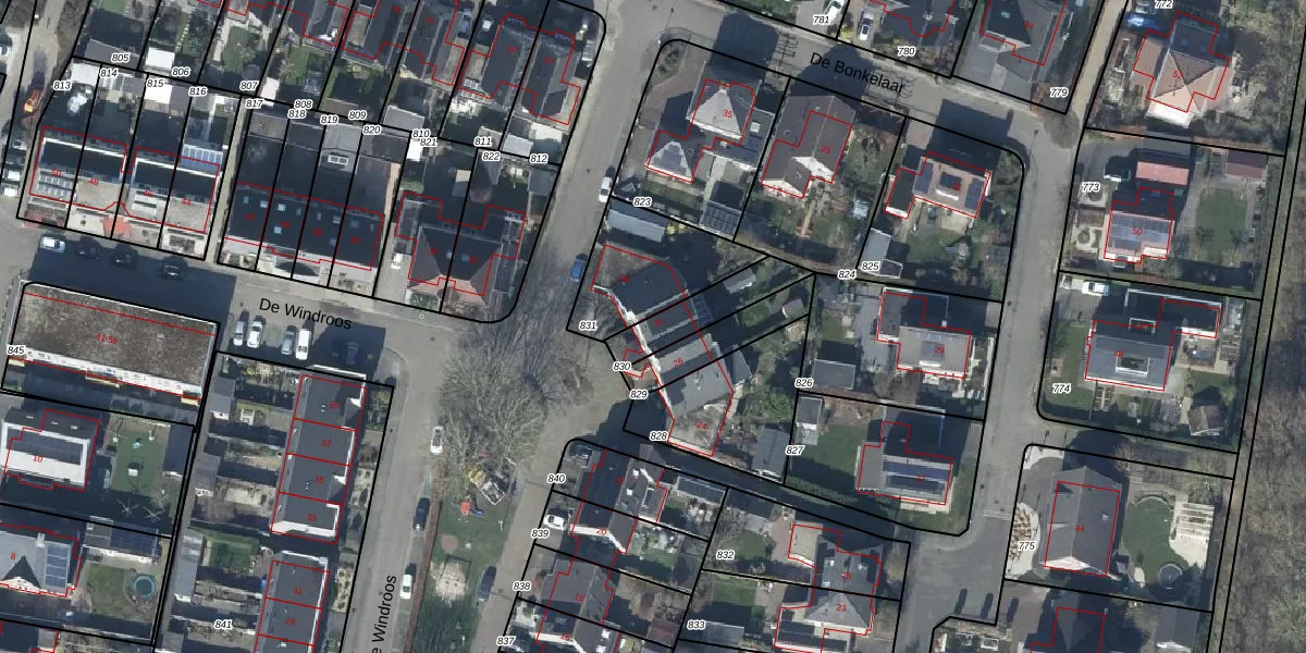 Gebruik de zoekbalk of klik op een perceel voor informatie over de adressen binnen dit perceel.