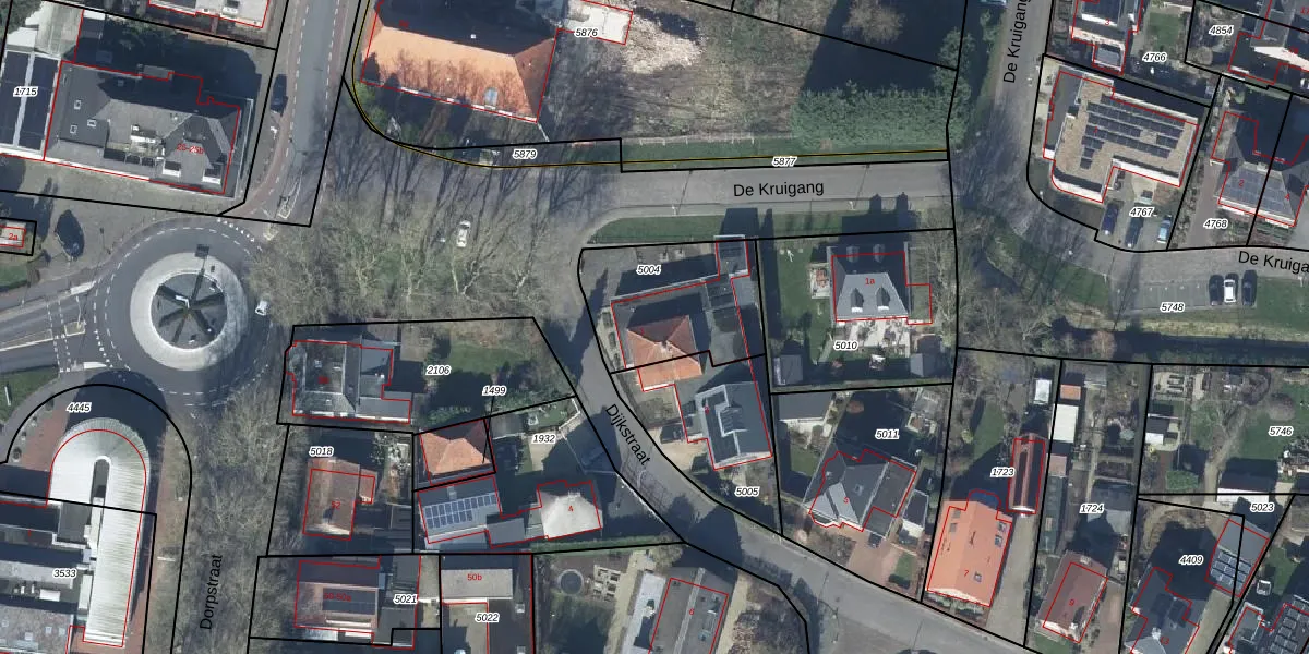 Dijkstraat 1 is gelegen op kadastraal perceel GEN00A5004. Deze kadastrale aanduiding is uniek en wordt gebruikt door het Kadaster om eigendomsrechten en andere zakelijke rechten vast te leggen. Het perceel maakt onderdeel uit van de kadastrale gemeente Gendt.
