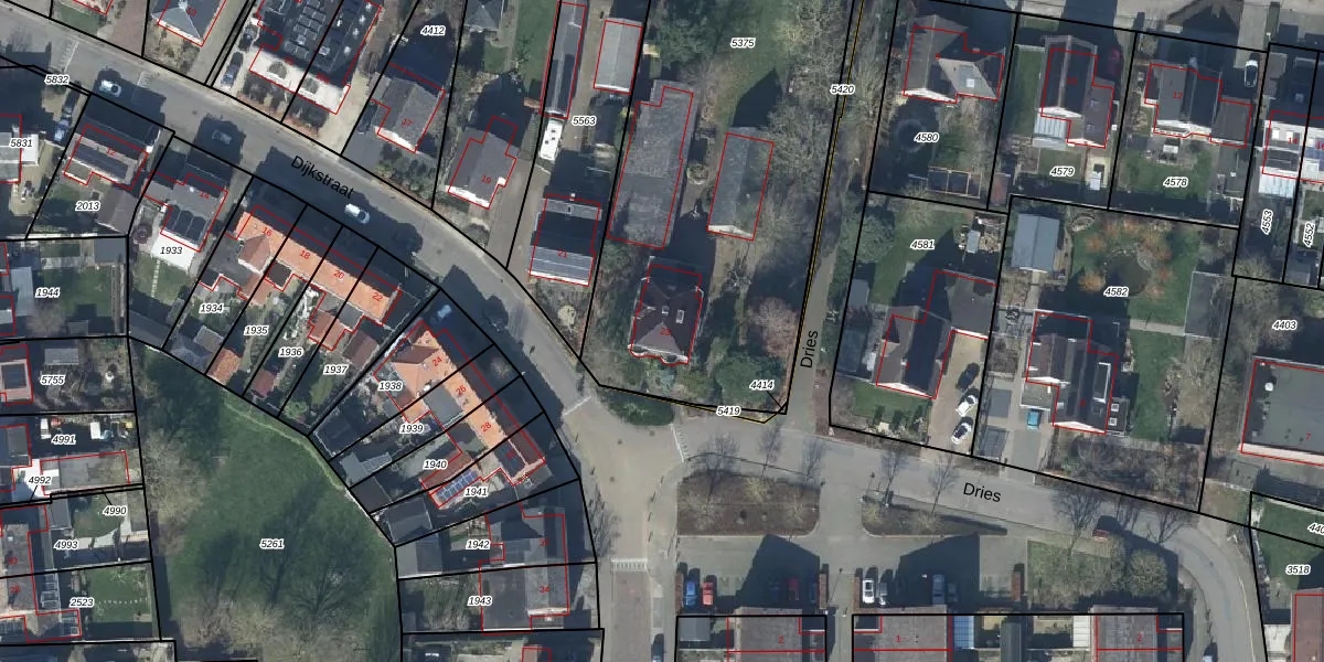 Het perceel waarop Dijkstraat 23 staat heeft een oppervlakte van 2320 m². Dit is een zeer groot perceel. De perceeloppervlakte wordt geregistreerd door het Kadaster. Gedetailleerde informatie over de maten van dit perceel kunt u vinden in het rapport Kadastrale kaart met maatvoering van Dijkstraat 23.