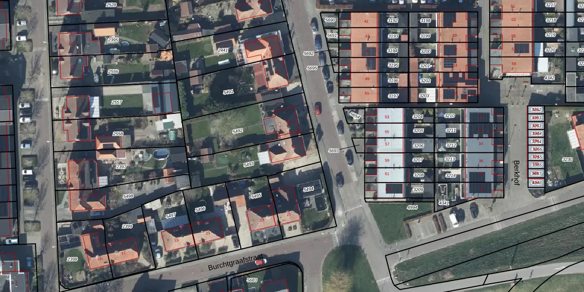 Gebruik de zoekbalk of klik op een perceel voor informatie over de adressen binnen dit perceel.