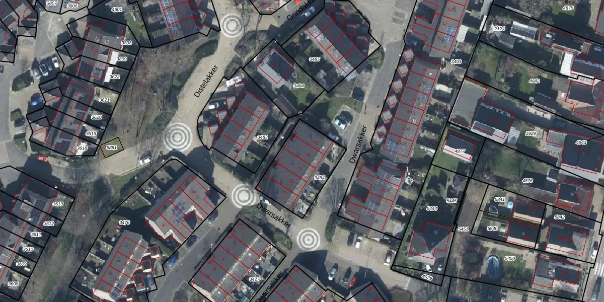 Dwarsakker 43 is gelegen op kadastraal perceel GEN00A3494. Deze kadastrale aanduiding is uniek en wordt gebruikt door het Kadaster om eigendomsrechten en andere zakelijke rechten vast te leggen. Het perceel maakt onderdeel uit van de kadastrale gemeente Gendt.