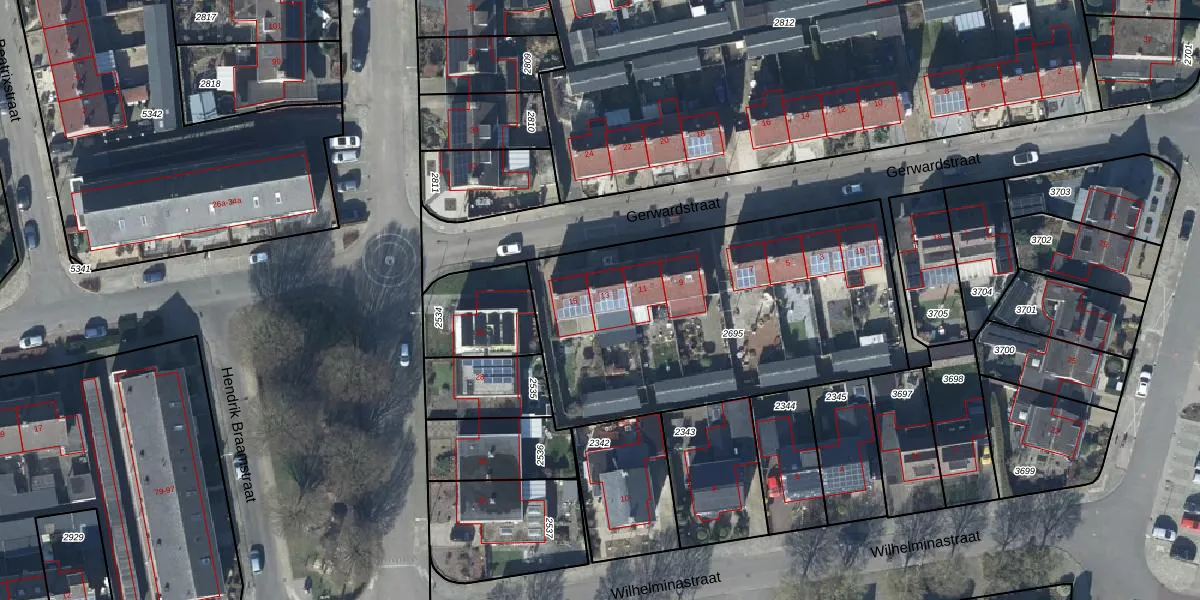 Het perceel waarop Gerwardstraat 13 staat heeft een oppervlakte van 1700 m². Dit is een zeer groot perceel. De perceeloppervlakte wordt geregistreerd door het Kadaster. Gedetailleerde informatie over de maten van dit perceel kunt u vinden in het rapport Kadastrale kaart met maatvoering van Gerwardstraat 13.