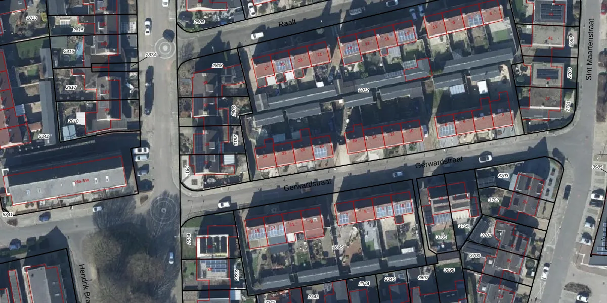 Gerwardstraat 20 is gelegen op kadastraal perceel GEN00A2812. Deze kadastrale aanduiding is uniek en wordt gebruikt door het Kadaster om eigendomsrechten en andere zakelijke rechten vast te leggen. Het perceel maakt onderdeel uit van de kadastrale gemeente Gendt.
