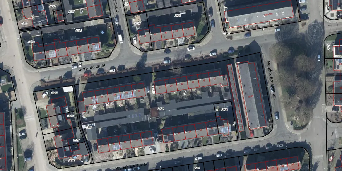 Het perceel waarop Gerwardstraat 25 staat heeft een oppervlakte van 4917 m². Dit is een zeer groot perceel. De perceeloppervlakte wordt geregistreerd door het Kadaster. Gedetailleerde informatie over de maten van dit perceel kunt u vinden in het rapport Kadastrale kaart met maatvoering van Gerwardstraat 25.