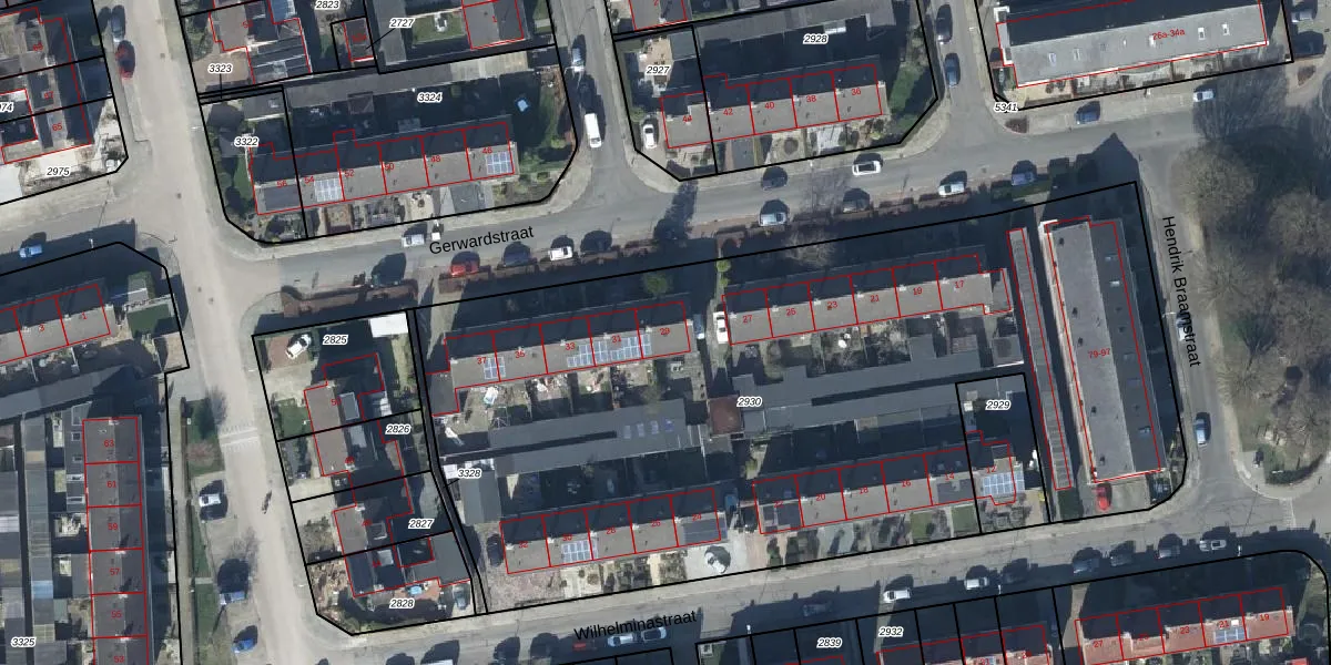 Het perceel waarop Gerwardstraat 29 staat heeft een oppervlakte van 4917 m². Dit is een zeer groot perceel. De perceeloppervlakte wordt geregistreerd door het Kadaster. Gedetailleerde informatie over de maten van dit perceel kunt u vinden in het rapport Kadastrale kaart met maatvoering van Gerwardstraat 29.