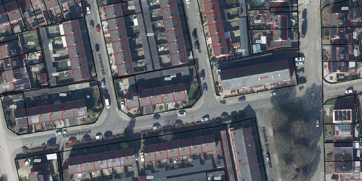Gerwardstraat 36 is gelegen op kadastraal perceel GEN00A2928. Deze kadastrale aanduiding is uniek en wordt gebruikt door het Kadaster om eigendomsrechten en andere zakelijke rechten vast te leggen. Het perceel maakt onderdeel uit van de kadastrale gemeente Gendt.