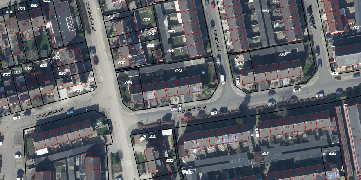 Het perceel waarop Gerwardstraat 48 staat heeft een oppervlakte van 965 m². Dit is een groot perceel. De perceeloppervlakte wordt geregistreerd door het Kadaster. Gedetailleerde informatie over de maten van dit perceel kunt u vinden in het rapport Kadastrale kaart met maatvoering van Gerwardstraat 48.