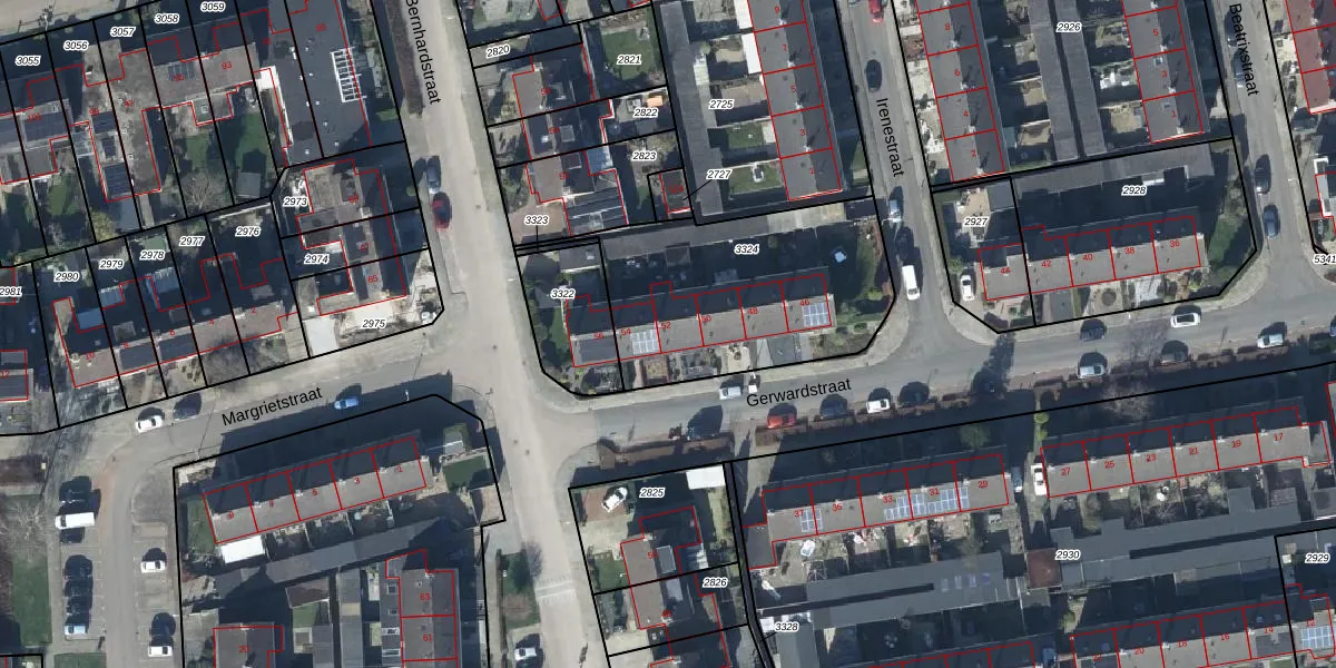 Gerwardstraat 52 is gelegen op kadastraal perceel GEN00A3324. Deze kadastrale aanduiding is uniek en wordt gebruikt door het Kadaster om eigendomsrechten en andere zakelijke rechten vast te leggen. Het perceel maakt onderdeel uit van de kadastrale gemeente Gendt.