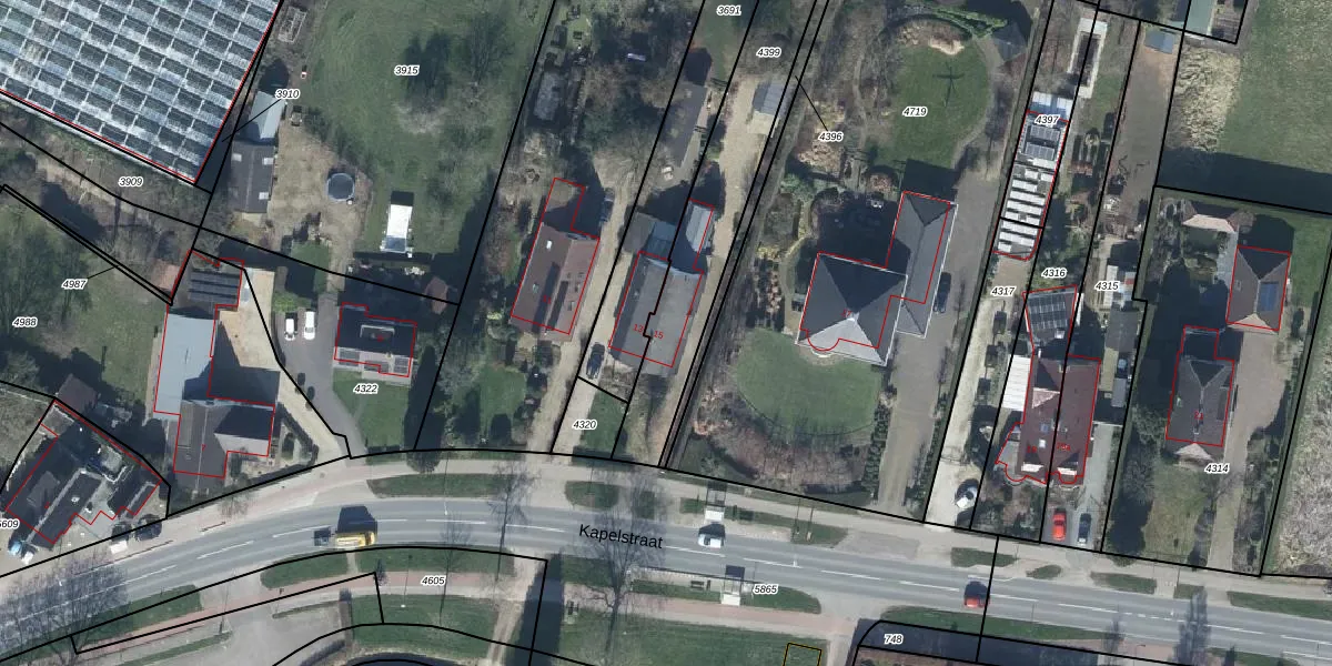 Kapelstraat 15 is gelegen op kadastraal perceel GEN00A4399. Deze kadastrale aanduiding is uniek en wordt gebruikt door het Kadaster om eigendomsrechten en andere zakelijke rechten vast te leggen. Het perceel maakt onderdeel uit van de kadastrale gemeente Gendt.