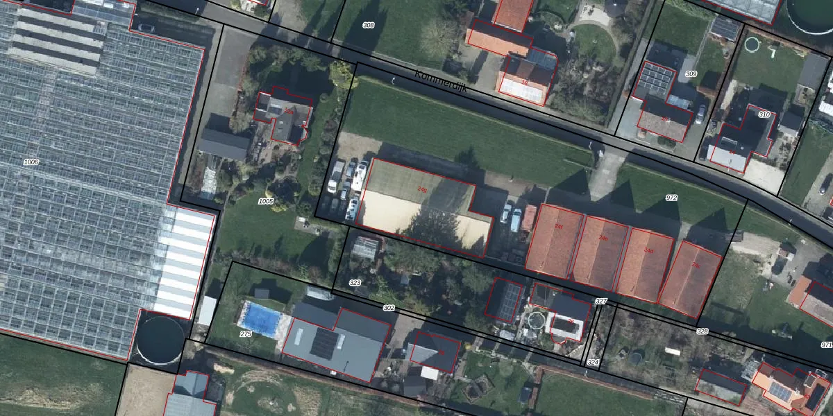 Het perceel waarop Kommerdijk 24-g staat heeft een oppervlakte van 3540 m². Dit is een zeer groot perceel. De perceeloppervlakte wordt geregistreerd door het Kadaster. Gedetailleerde informatie over de maten van dit perceel kunt u vinden in het rapport Kadastrale kaart met maatvoering van Kommerdijk 24-g.