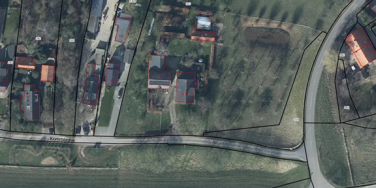 Kommerdijk 38-a is gelegen op kadastraal perceel GEN00E313. Deze kadastrale aanduiding is uniek en wordt gebruikt door het Kadaster om eigendomsrechten en andere zakelijke rechten vast te leggen. Het perceel maakt onderdeel uit van de kadastrale gemeente Gendt.