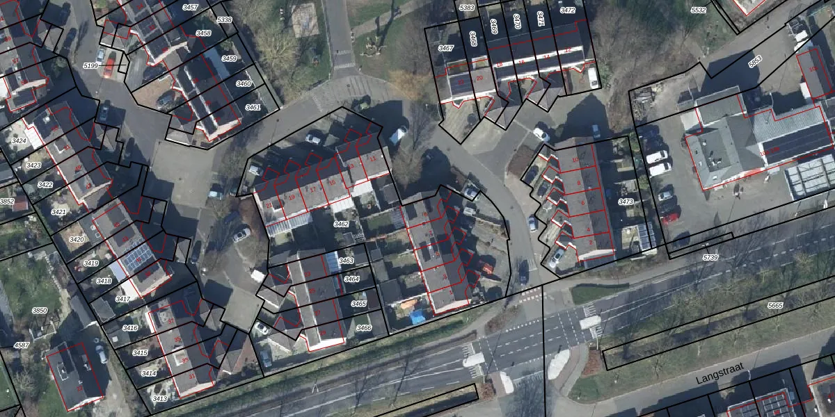 Langakker 9 is gelegen op kadastraal perceel GEN00A3462. Deze kadastrale aanduiding is uniek en wordt gebruikt door het Kadaster om eigendomsrechten en andere zakelijke rechten vast te leggen. Het perceel maakt onderdeel uit van de kadastrale gemeente Gendt.