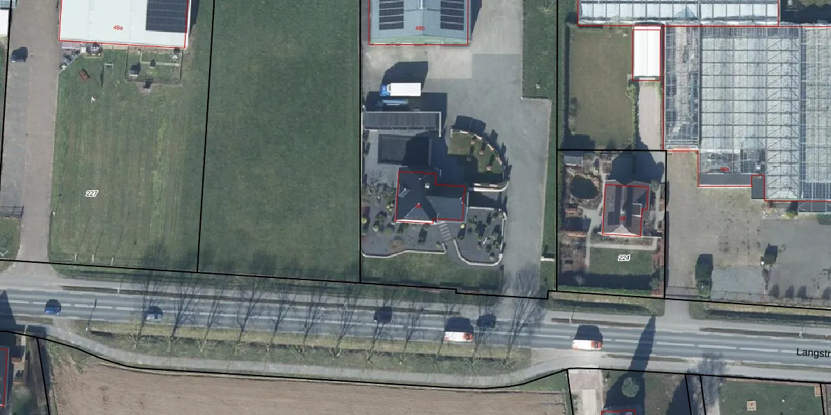 Langstraat 48 is gelegen op kadastraal perceel GEN00E225. Deze kadastrale aanduiding is uniek en wordt gebruikt door het Kadaster om eigendomsrechten en andere zakelijke rechten vast te leggen. Het perceel maakt onderdeel uit van de kadastrale gemeente Gendt.