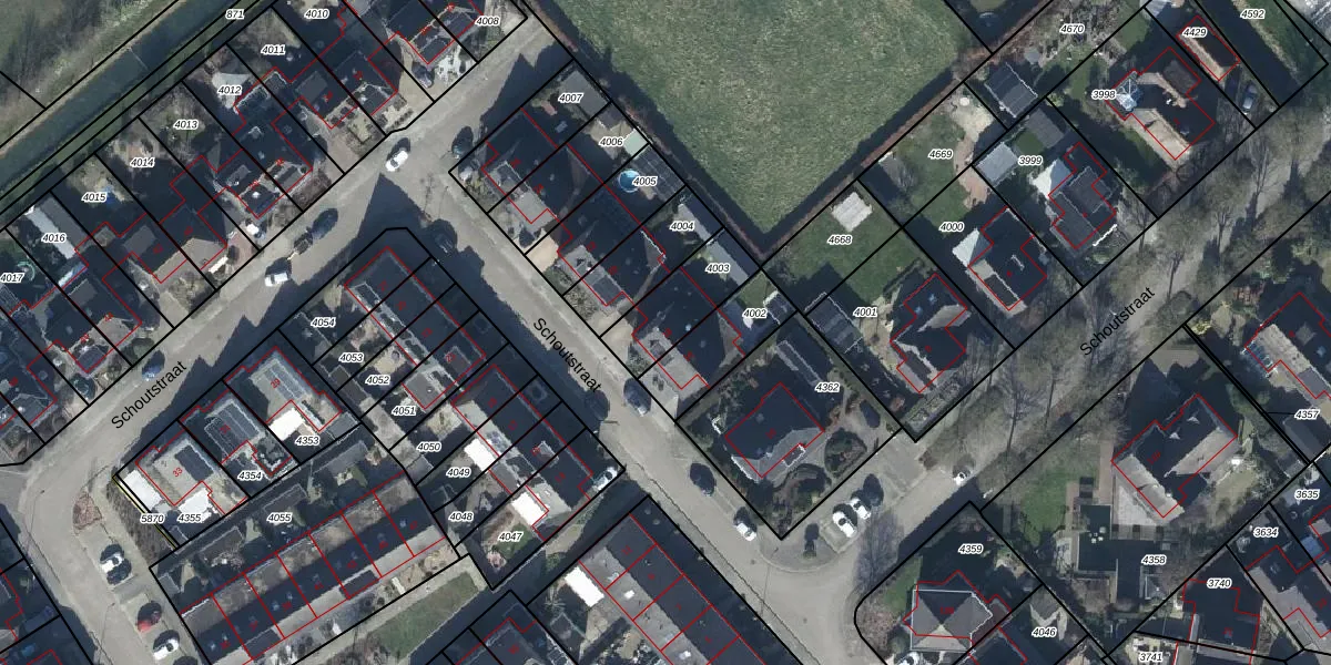 Schoutstraat 18 is gelegen op kadastraal perceel GEN00A4003. Deze kadastrale aanduiding is uniek en wordt gebruikt door het Kadaster om eigendomsrechten en andere zakelijke rechten vast te leggen. Het perceel maakt onderdeel uit van de kadastrale gemeente Gendt.