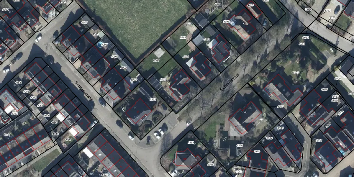 Het perceel waarop Schoutstraat 8 staat heeft een oppervlakte van 505 m². Dit is een groot perceel. De perceeloppervlakte wordt geregistreerd door het Kadaster. Gedetailleerde informatie over de maten van dit perceel kunt u vinden in het rapport Kadastrale kaart met maatvoering van Schoutstraat 8.