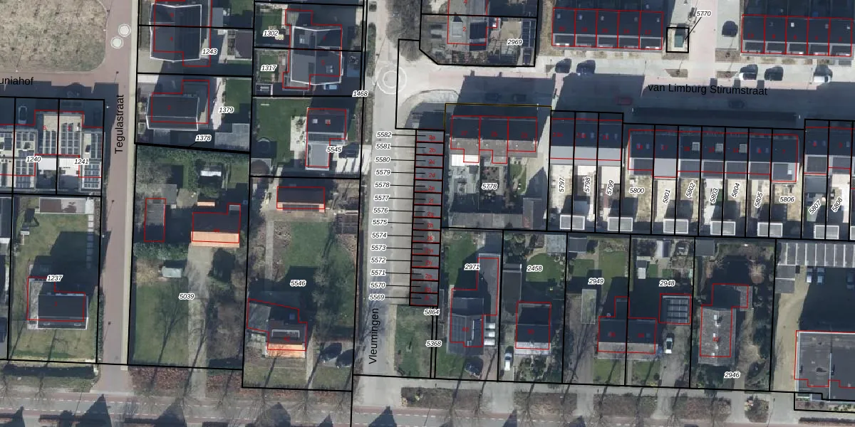 Het perceel waarop Vleumingen 2-g staat heeft een oppervlakte van 19 m². Dit is een klein perceel. De perceeloppervlakte wordt geregistreerd door het Kadaster. Gedetailleerde informatie over de maten van dit perceel kunt u vinden in het rapport Kadastrale kaart met maatvoering van Vleumingen 2-g.