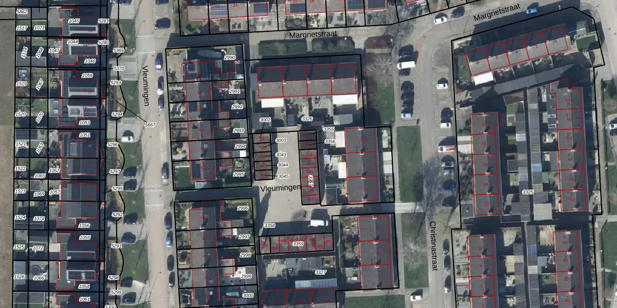 Het perceel waarop Vleumingen 48-q staat heeft een oppervlakte van 106 m². Dit is een middelgroot perceel. De perceeloppervlakte wordt geregistreerd door het Kadaster. Gedetailleerde informatie over de maten van dit perceel kunt u vinden in het rapport Kadastrale kaart met maatvoering van Vleumingen 48-q.