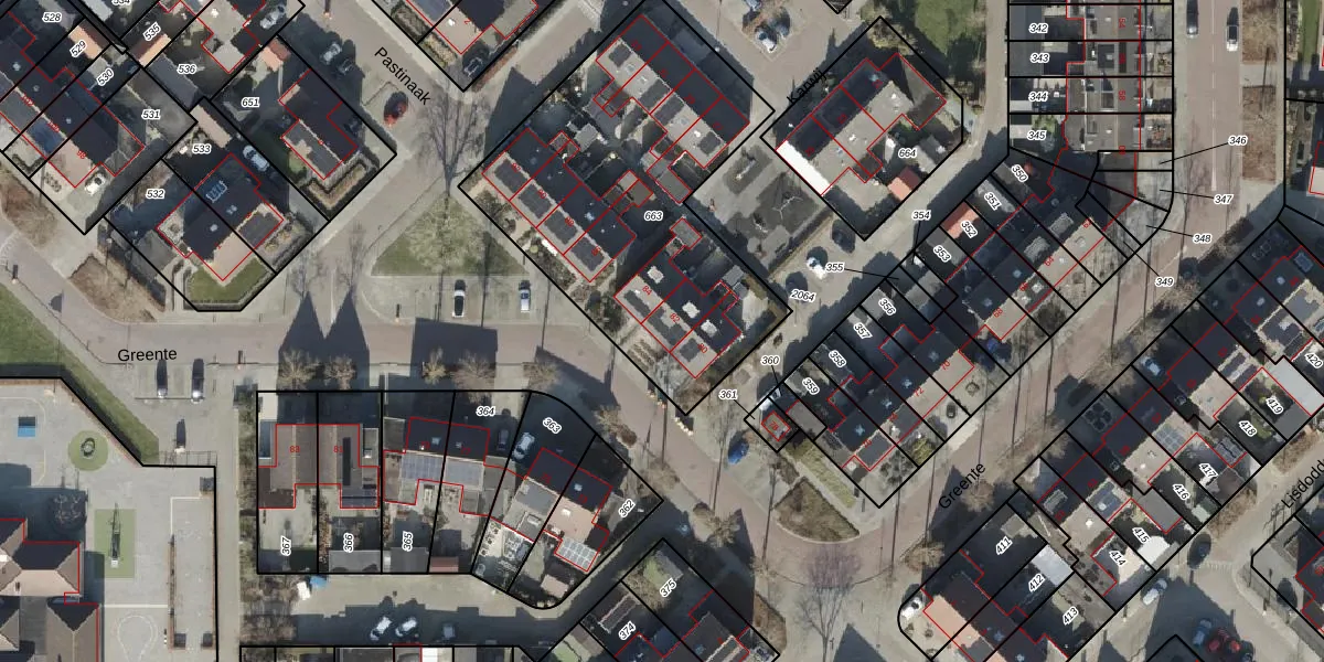 Het perceel waarop Greente 82 staat heeft een oppervlakte van 1597 m². Dit is een zeer groot perceel. De perceeloppervlakte wordt geregistreerd door het Kadaster. Gedetailleerde informatie over de maten van dit perceel kunt u vinden in het rapport Kadastrale kaart met maatvoering van Greente 82.