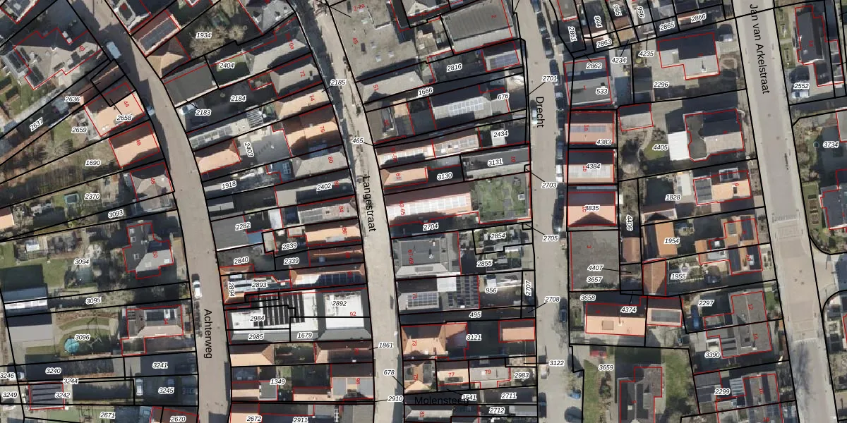 Het perceel waarop Langestraat 63 staat heeft een oppervlakte van 388 m². Dit is een groot perceel. De perceeloppervlakte wordt geregistreerd door het Kadaster. Gedetailleerde informatie over de maten van dit perceel kunt u vinden in het rapport Kadastrale kaart met maatvoering van Langestraat 63.