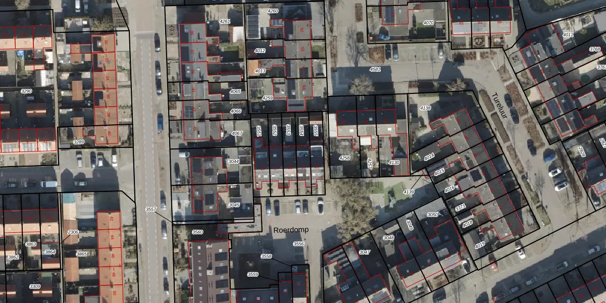 Gebruik de zoekbalk of klik op een perceel voor informatie over de adressen binnen dit perceel.