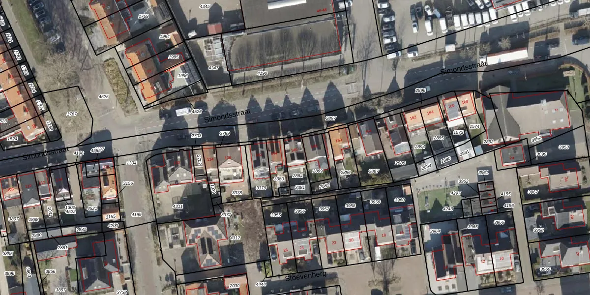 Simondsstraat 146 is gelegen op kadastraal perceel GNM00C2884. Deze kadastrale aanduiding is uniek en wordt gebruikt door het Kadaster om eigendomsrechten en andere zakelijke rechten vast te leggen. Het perceel maakt onderdeel uit van de kadastrale gemeente Genemuiden.