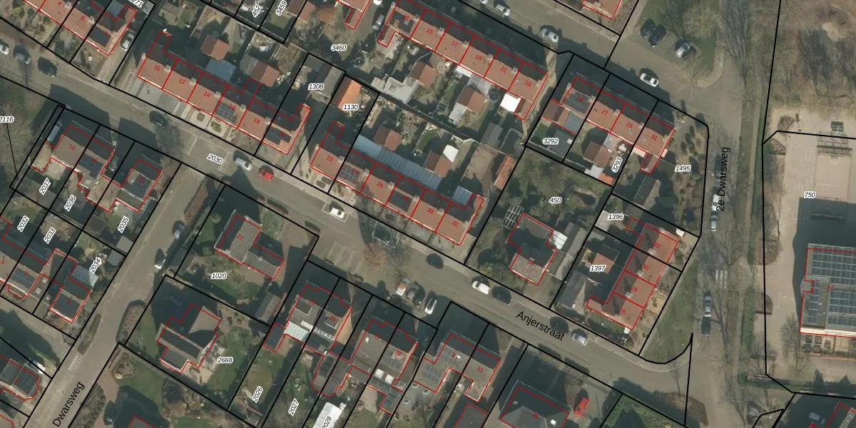 Het perceel waarop Anjerstraat 30 staat heeft een oppervlakte van 4310 m². Dit is een zeer groot perceel. De perceeloppervlakte wordt geregistreerd door het Kadaster. Gedetailleerde informatie over de maten van dit perceel kunt u vinden in het rapport Kadastrale kaart met maatvoering van Anjerstraat 30.
