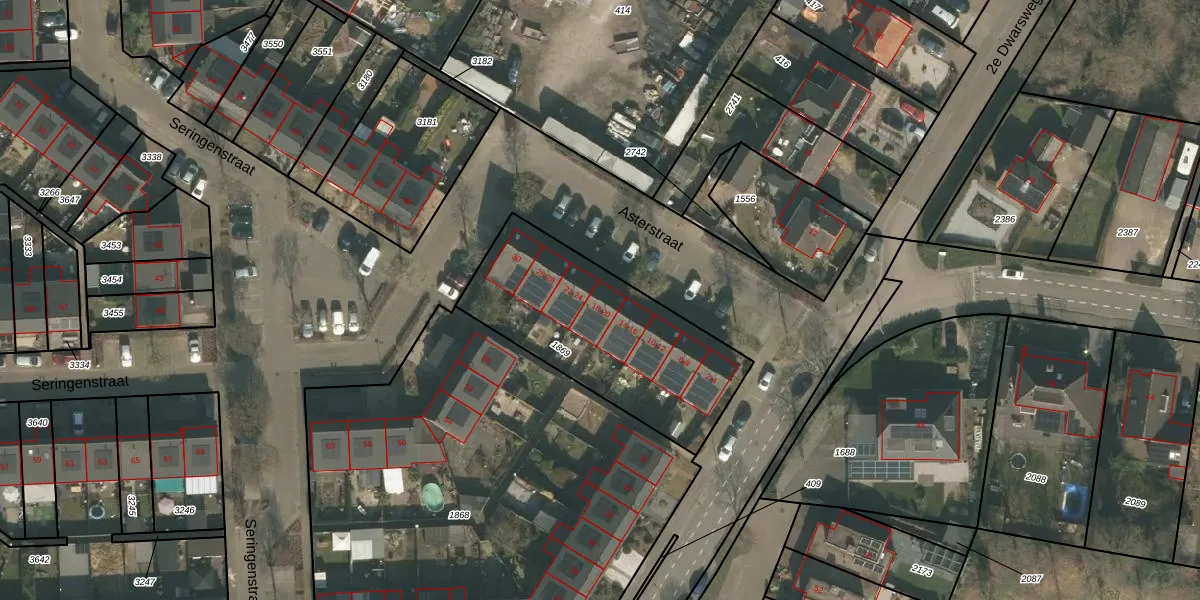 Het perceel waarop Asterstraat 20 staat heeft een oppervlakte van 853 m². Dit is een groot perceel. De perceeloppervlakte wordt geregistreerd door het Kadaster. Gedetailleerde informatie over de maten van dit perceel kunt u vinden in het rapport Kadastrale kaart met maatvoering van Asterstraat 20.