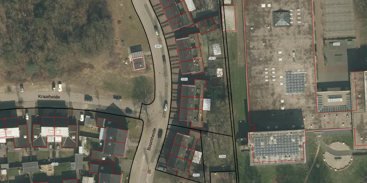 Het perceel waarop Boomheide 11 staat heeft een oppervlakte van 2675 m². Dit is een zeer groot perceel. De perceeloppervlakte wordt geregistreerd door het Kadaster. Gedetailleerde informatie over de maten van dit perceel kunt u vinden in het rapport Kadastrale kaart met maatvoering van Boomheide 11.